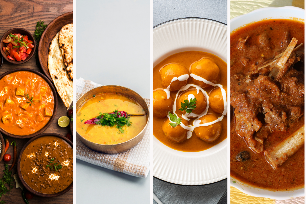 Im Folgenden eine kleine typische Aufzählung von Menüs aus dem fast unbegrenzten Angebot der Indischen Küche: Das sind einige Essensgerichte als Hauptgerichte für alle Anlässe rund um die Uhr, vor allem für solche, die Liebhaber der Indischen Küche sind oder es werden wollen.